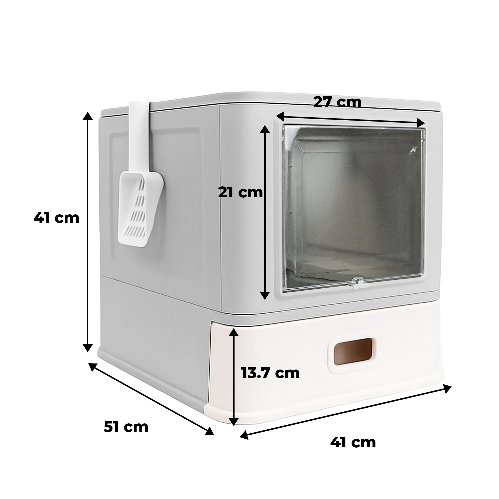 DISEÑO PLEGABLE: Arenero para gatos mide 51*41*41cm con estructura plegable y tapa desmontable para fácil almacenamiento y limpieza. Apto para gatos de hasta 15 kg.