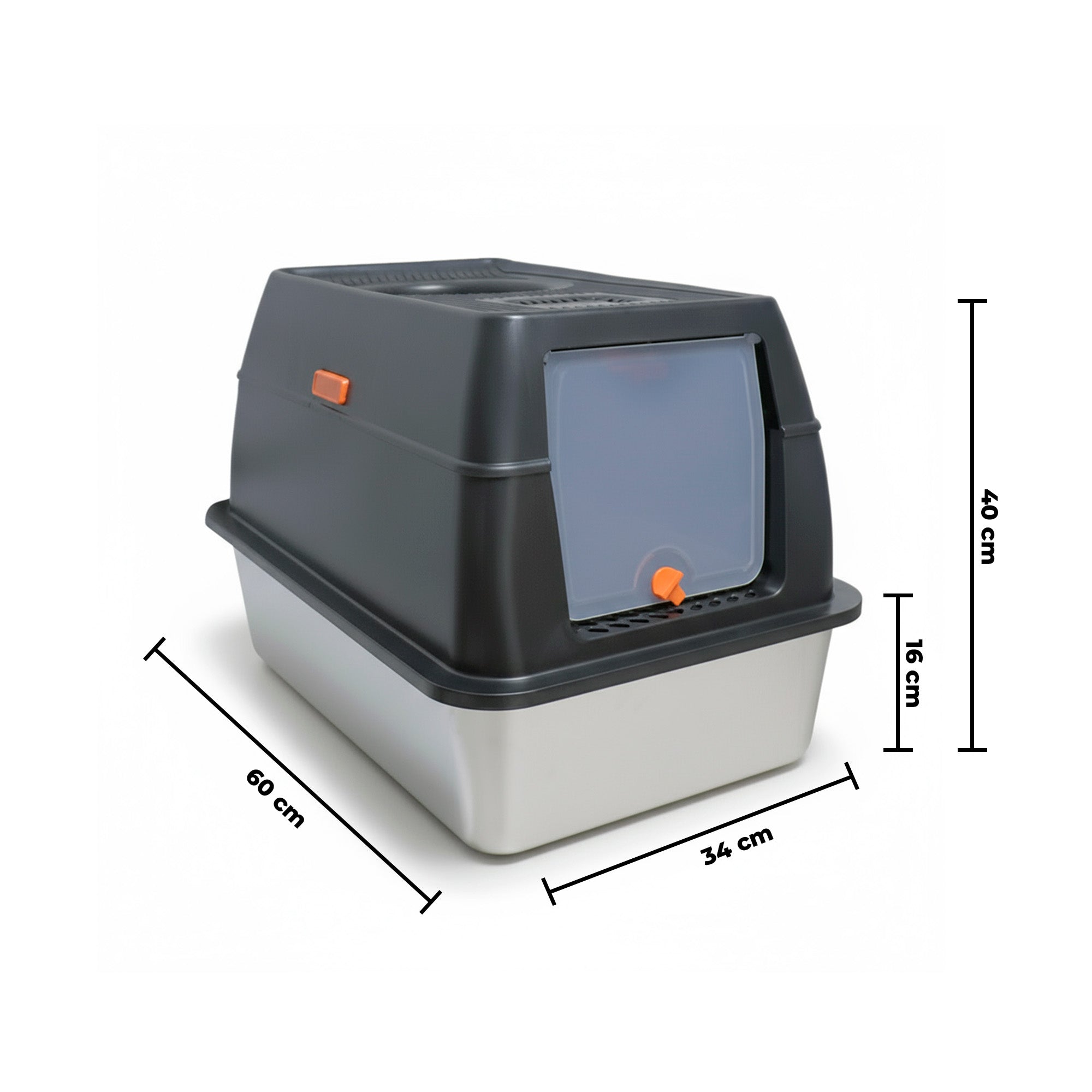 DISEÑO DESMONTABLE: El arenero para gatos mide 60×40×38 cm y tapa desmontable que facilitan el almacenamiento, transporte y limpieza. Apto para gatos de hasta 15 kg.