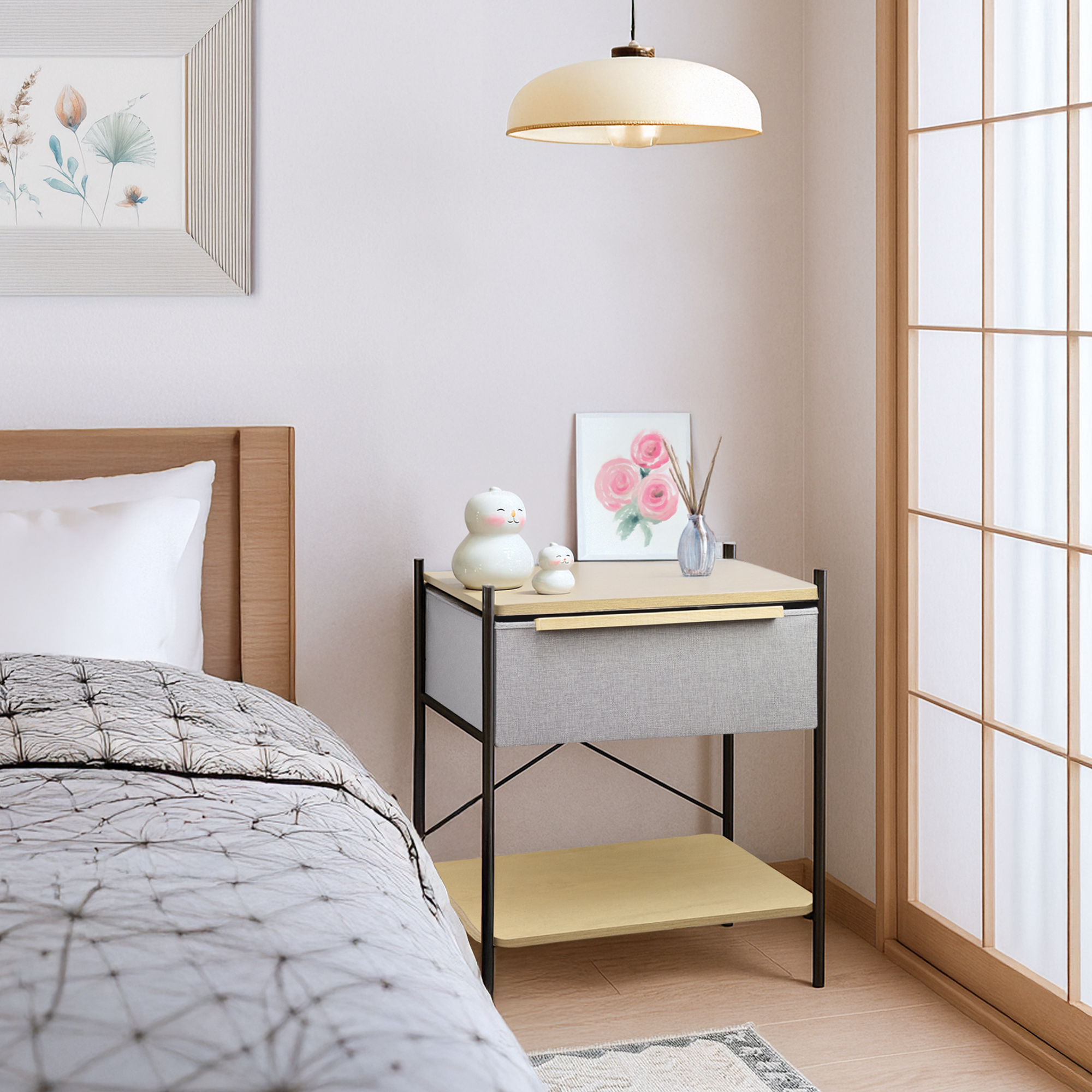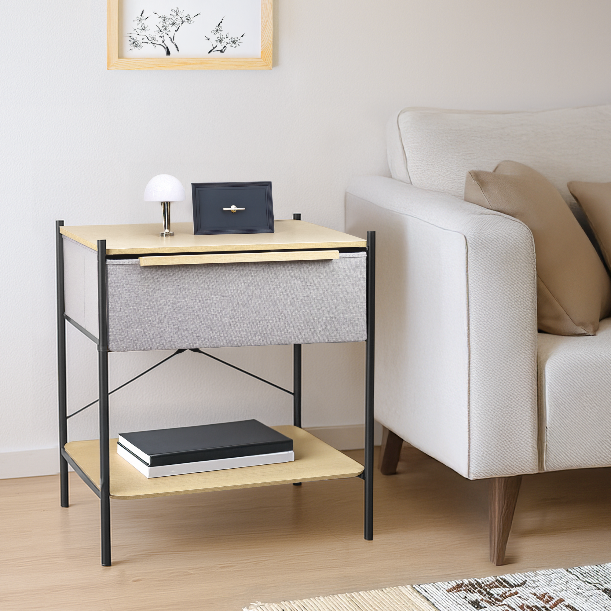 Buró Estilo Kanso con Estante Gris Claro y Natural
