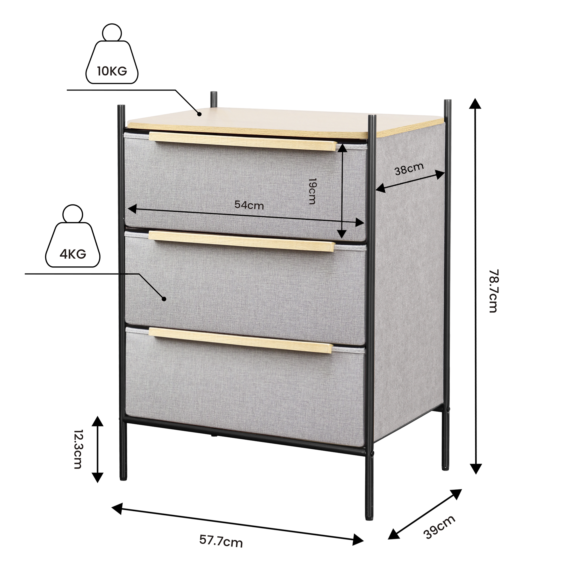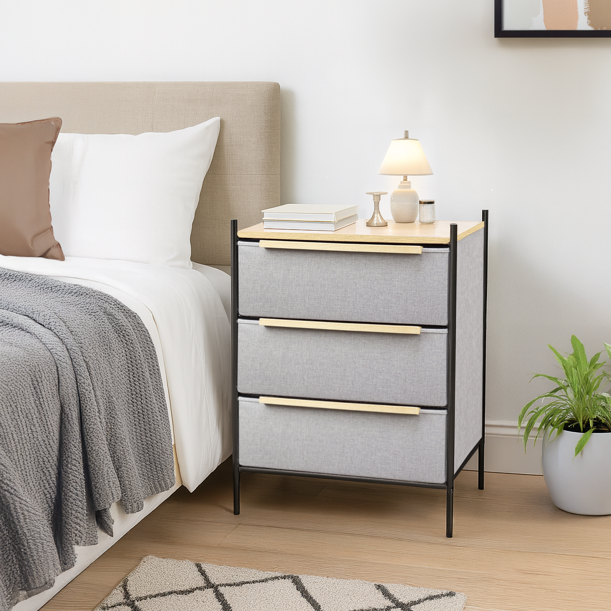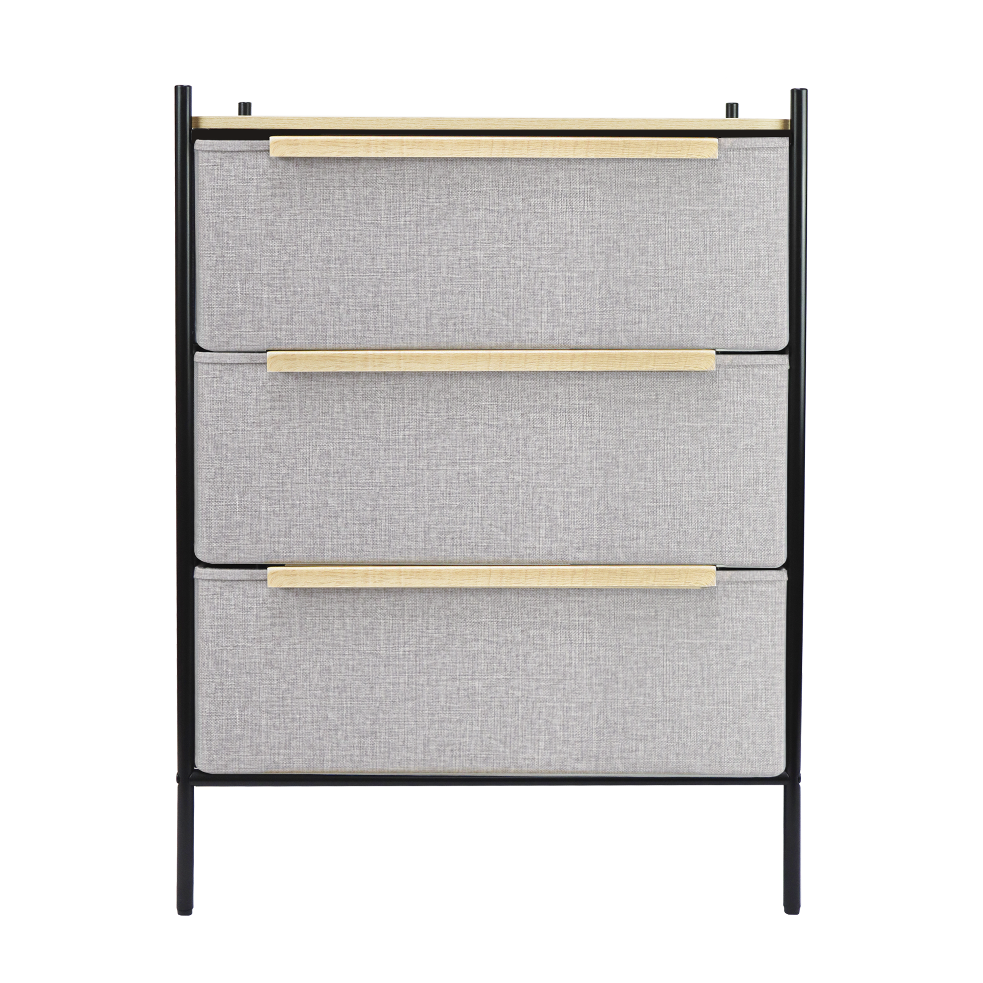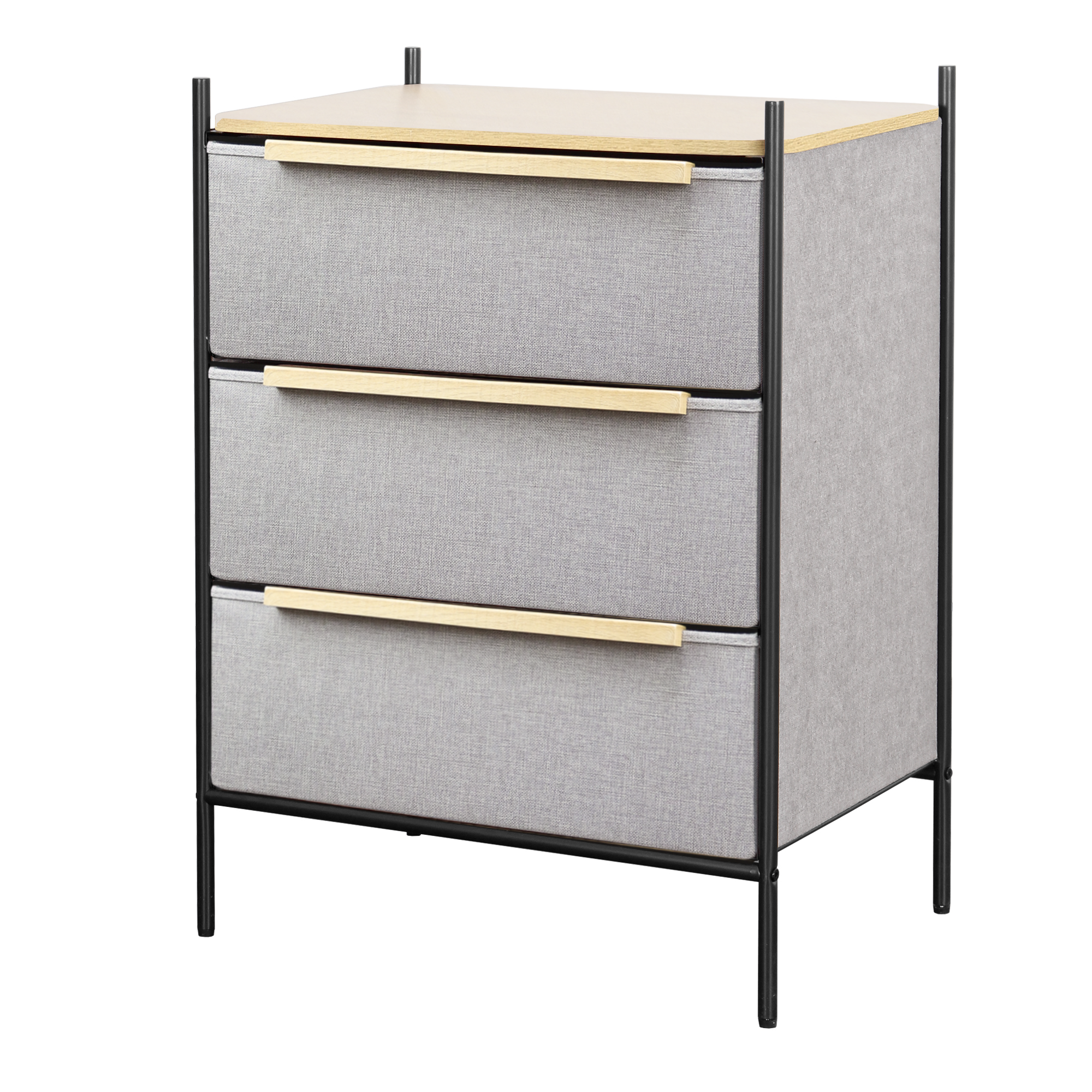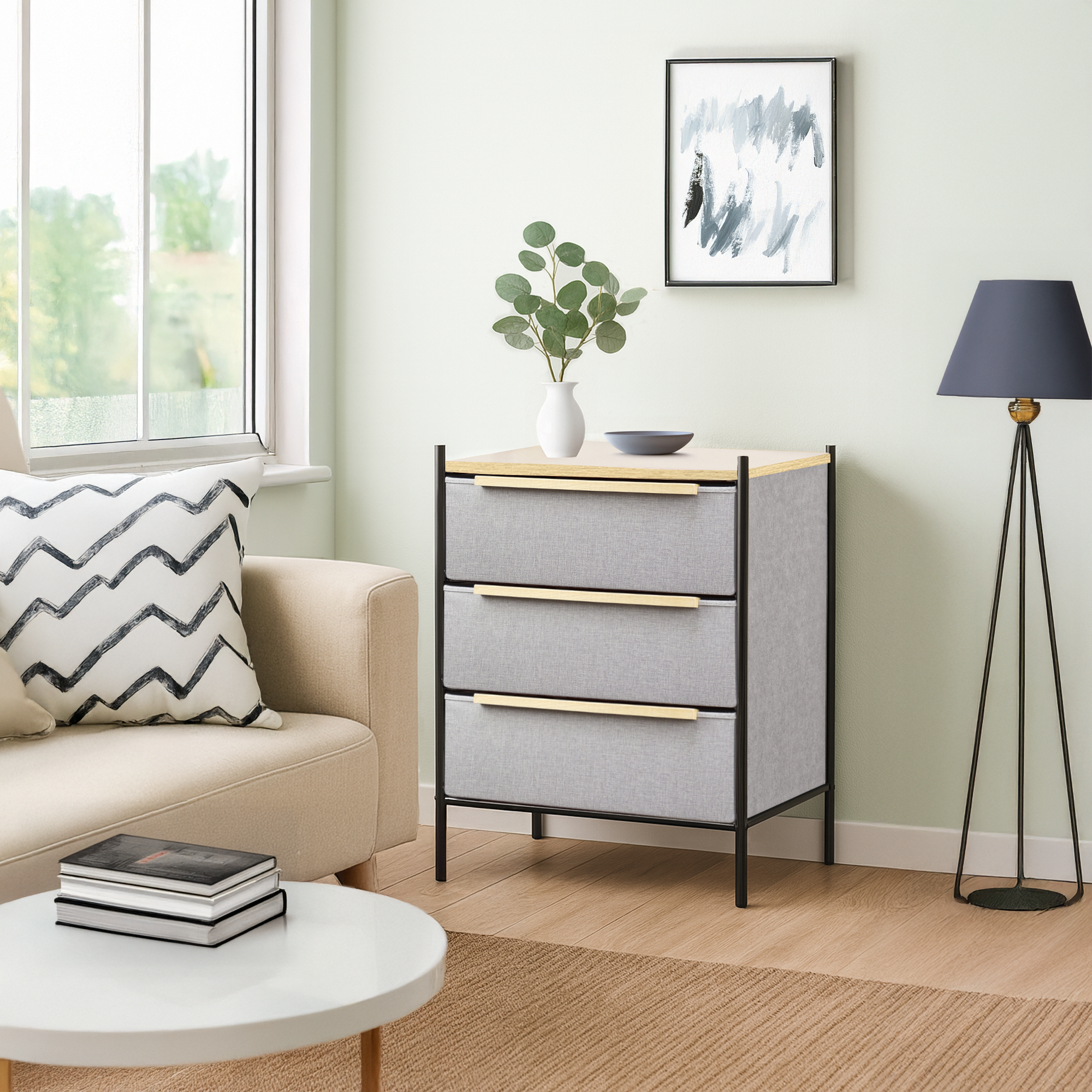 Cómoda Estilo Kanso 3 Cajones Gris Claro y Natural