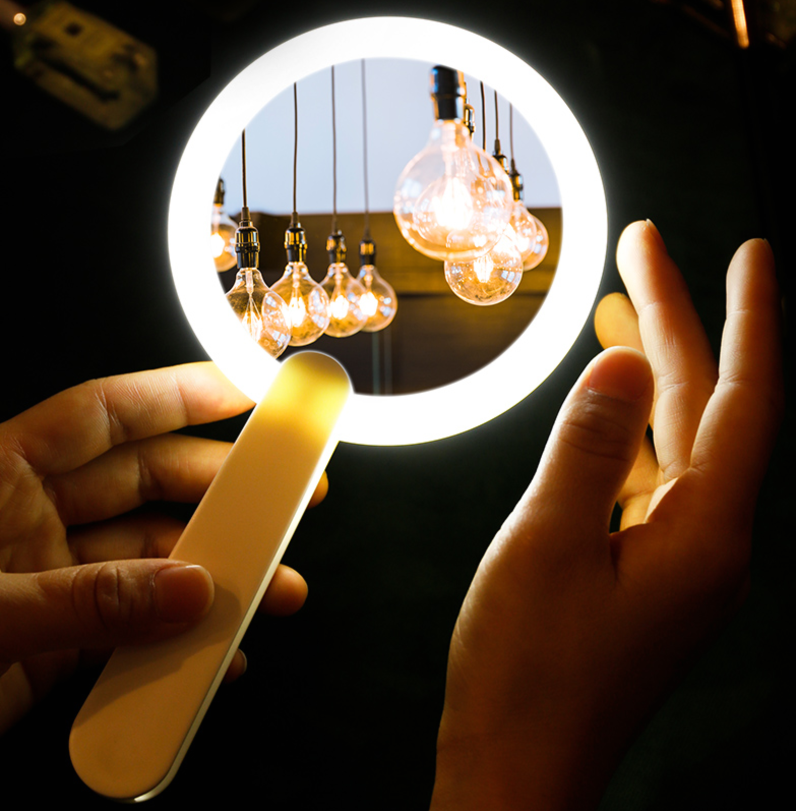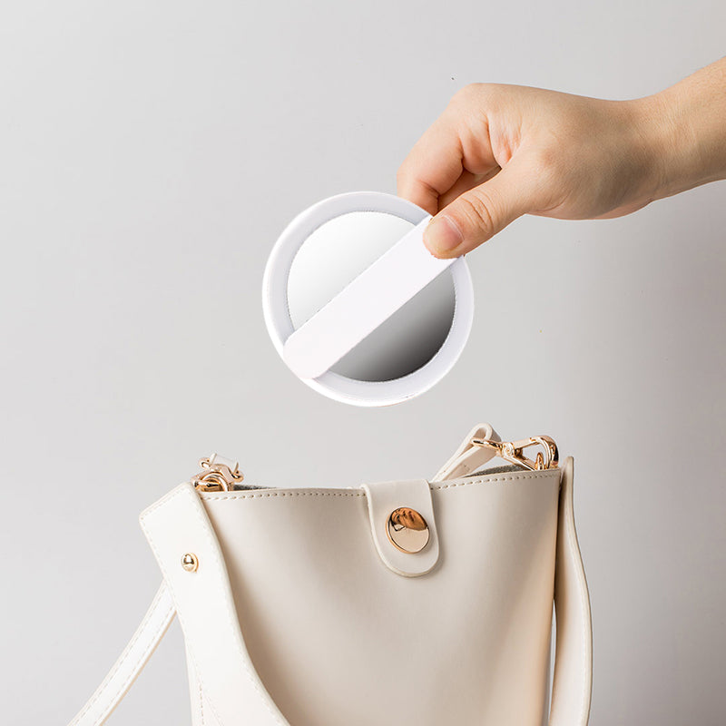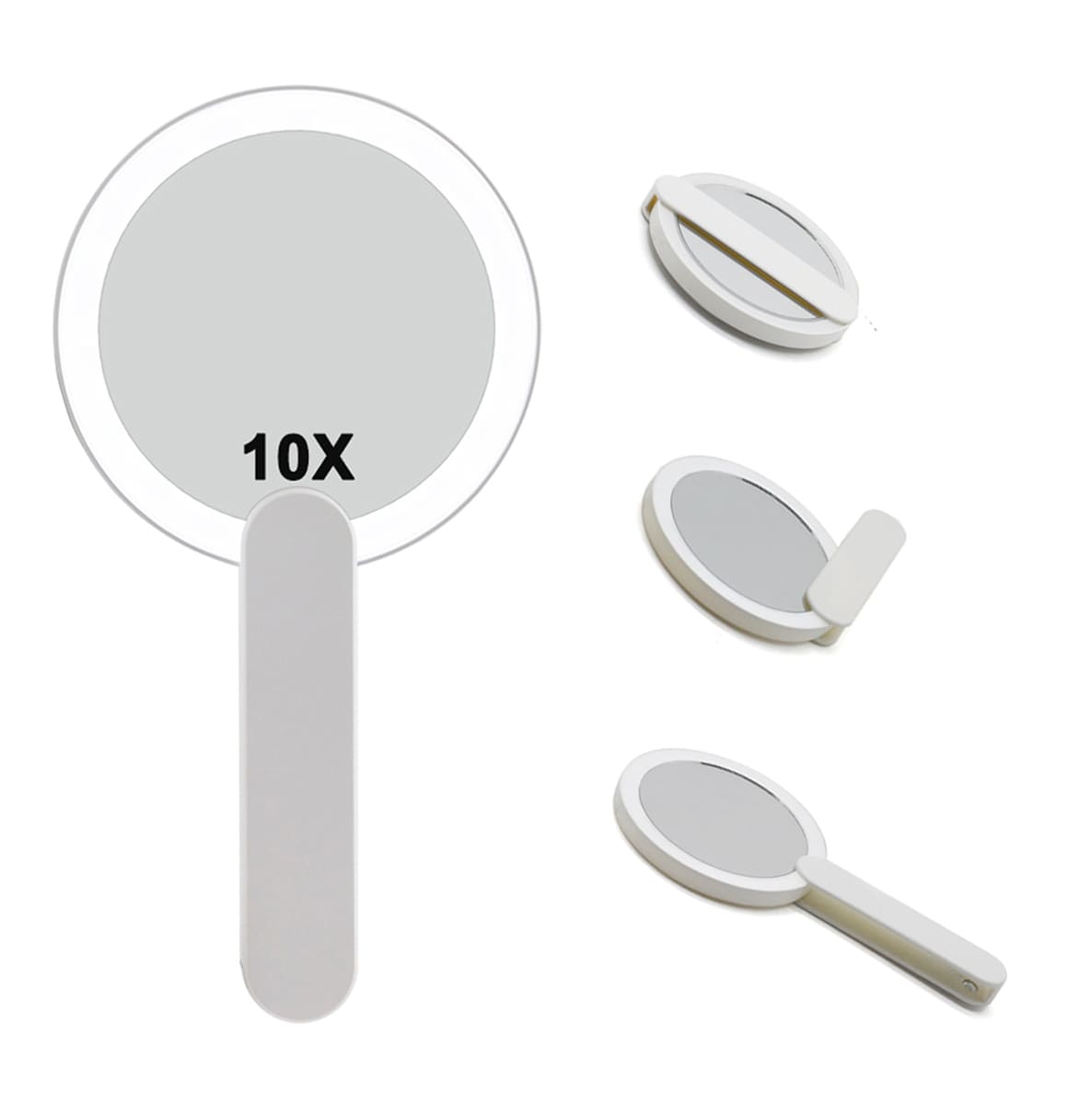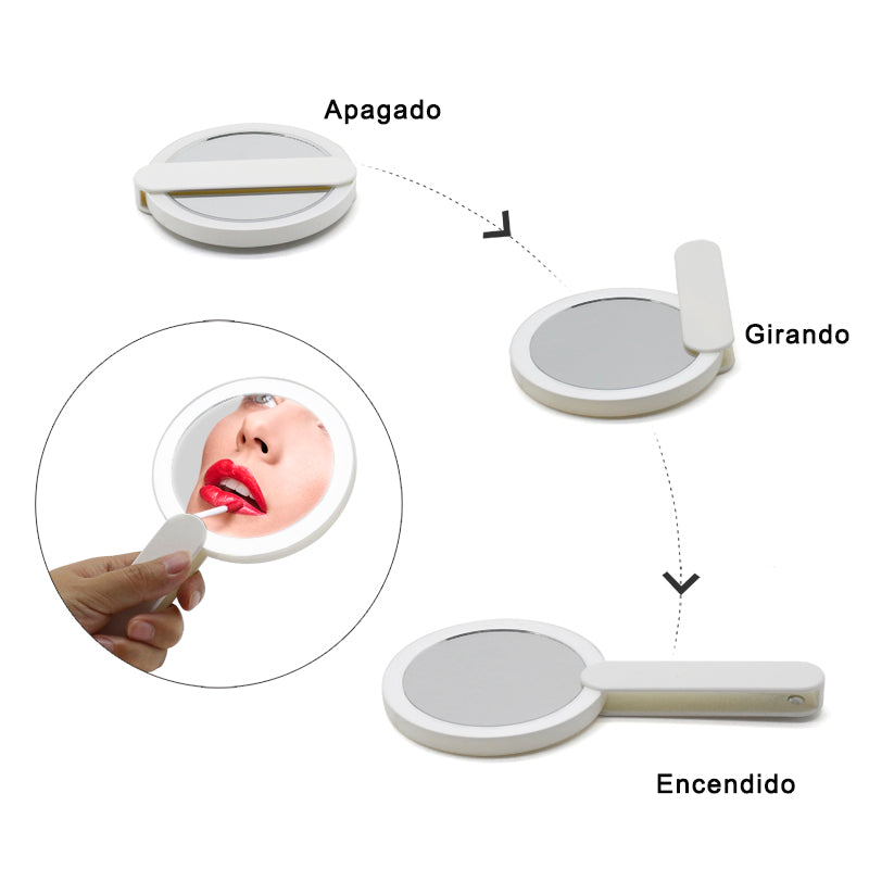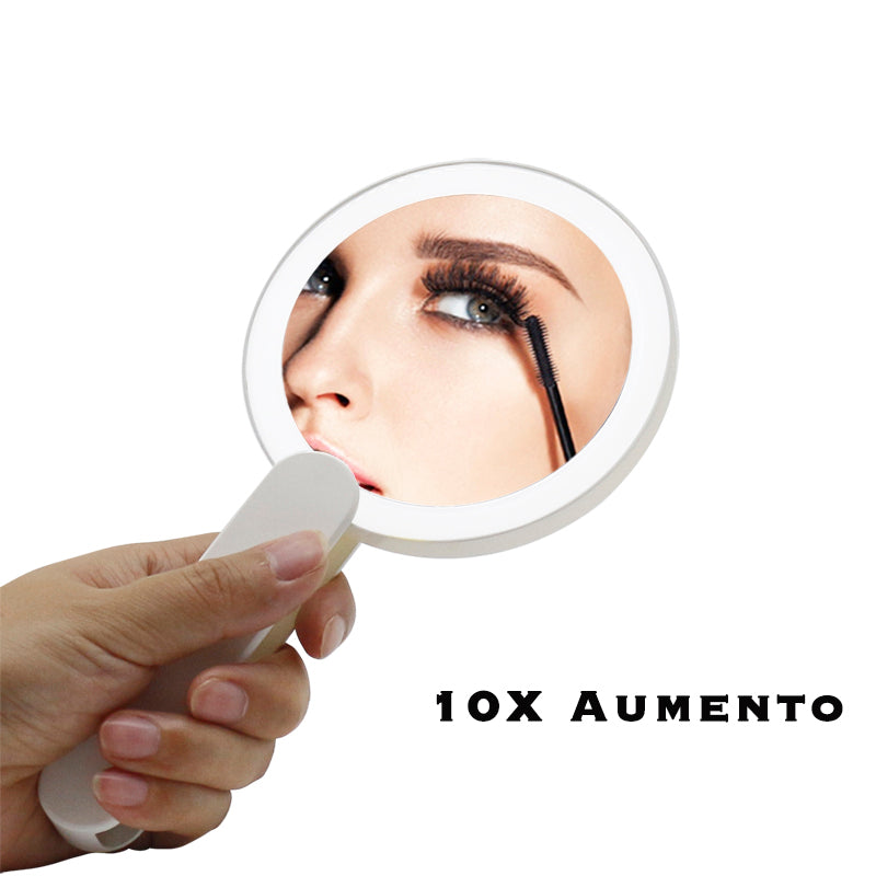 Espejo Compacto de Maquillaje con Luz LED y Aumento 10x – Portátil y Plegable