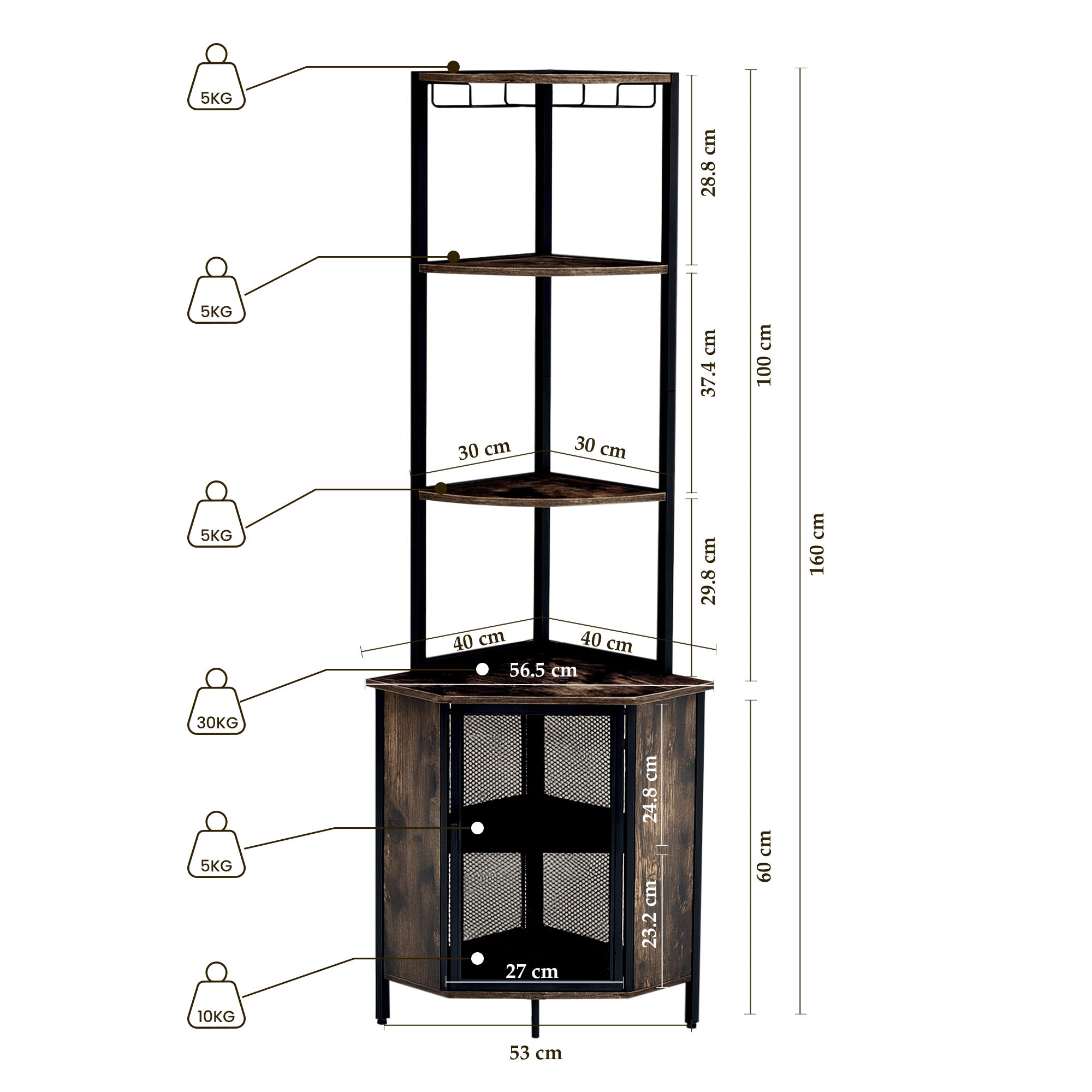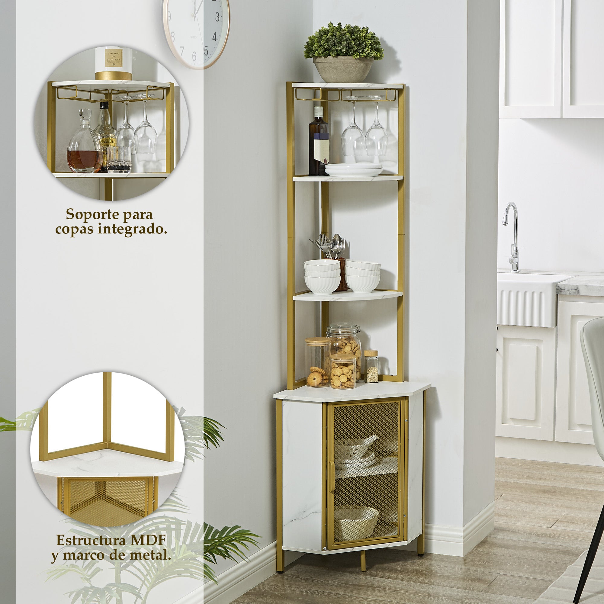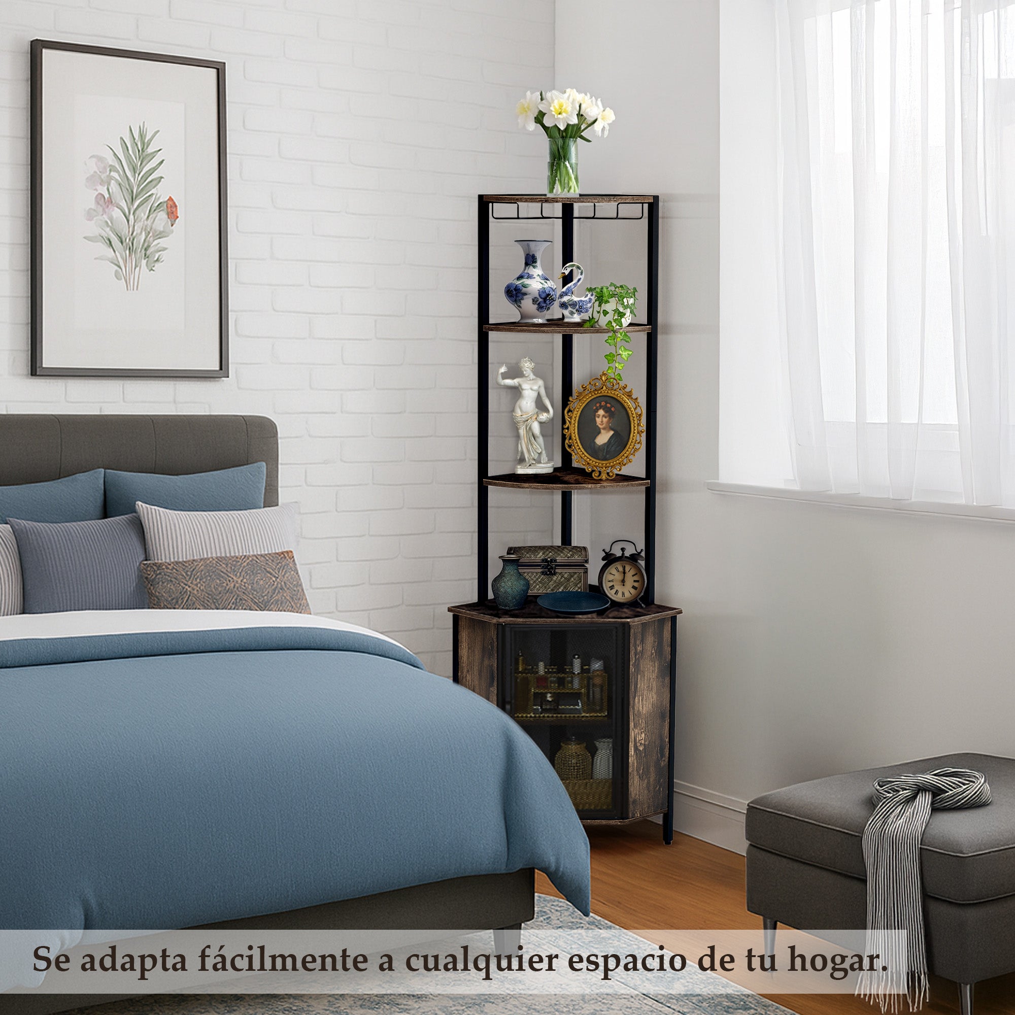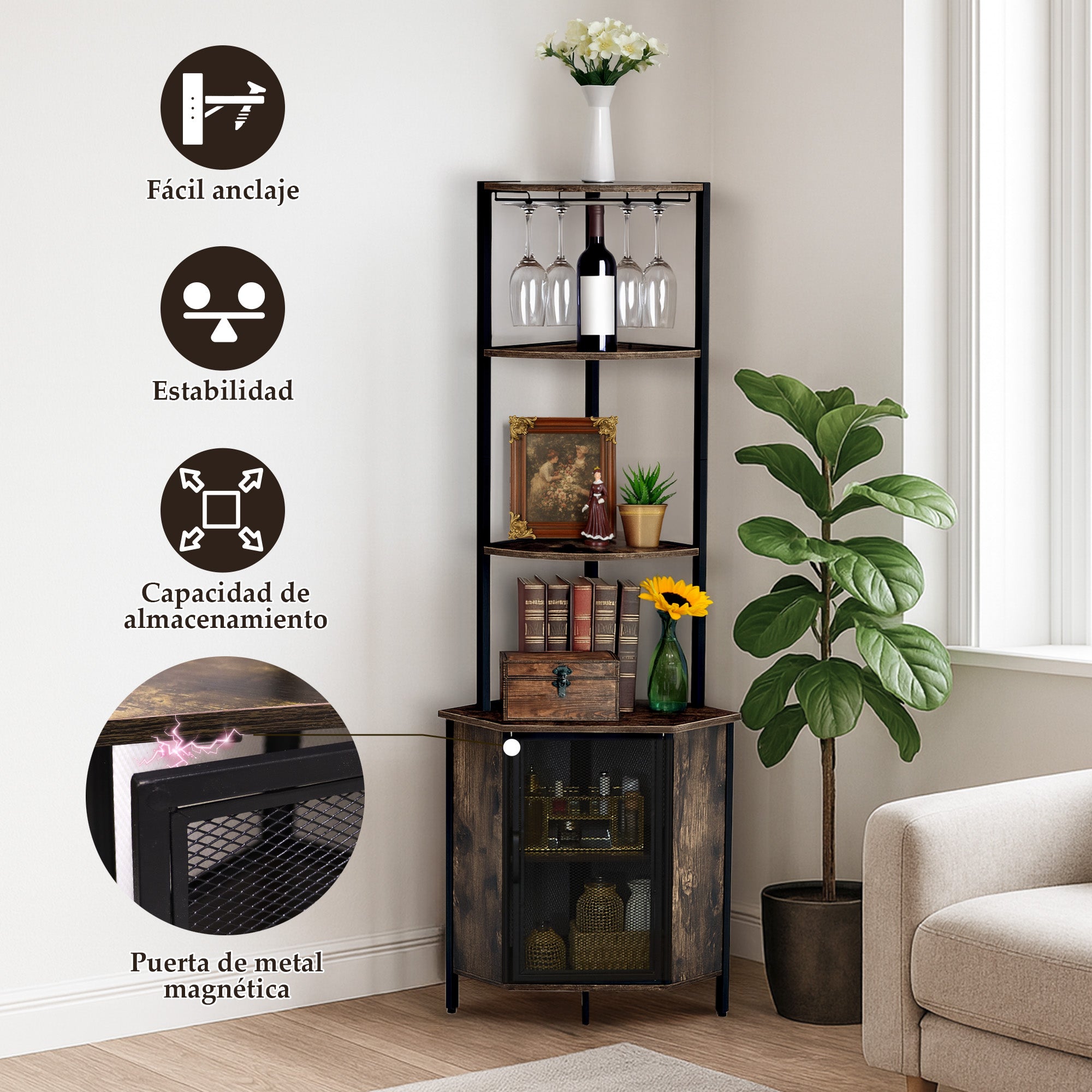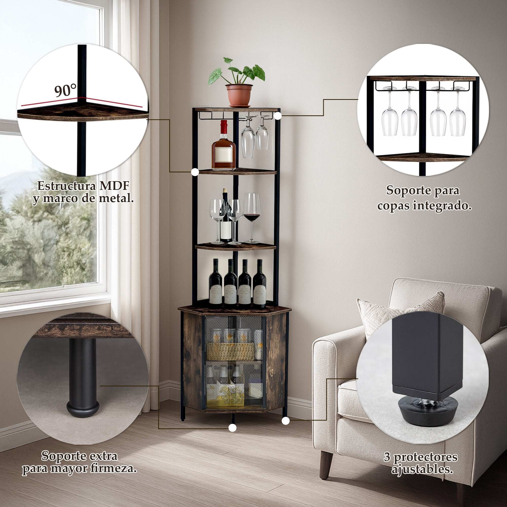 Estantes amplios para botellas, licores, vasos, tazas y accesorios, manteniendo todo ordenado y accesible. - Rack para copas de vino: Incluye soporte especial para colgar copas, aprovechando el espacio vertical y facilitando el acceso.