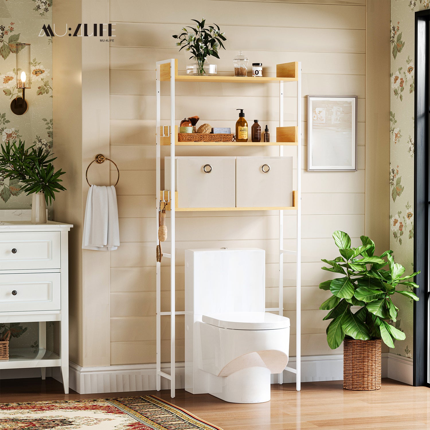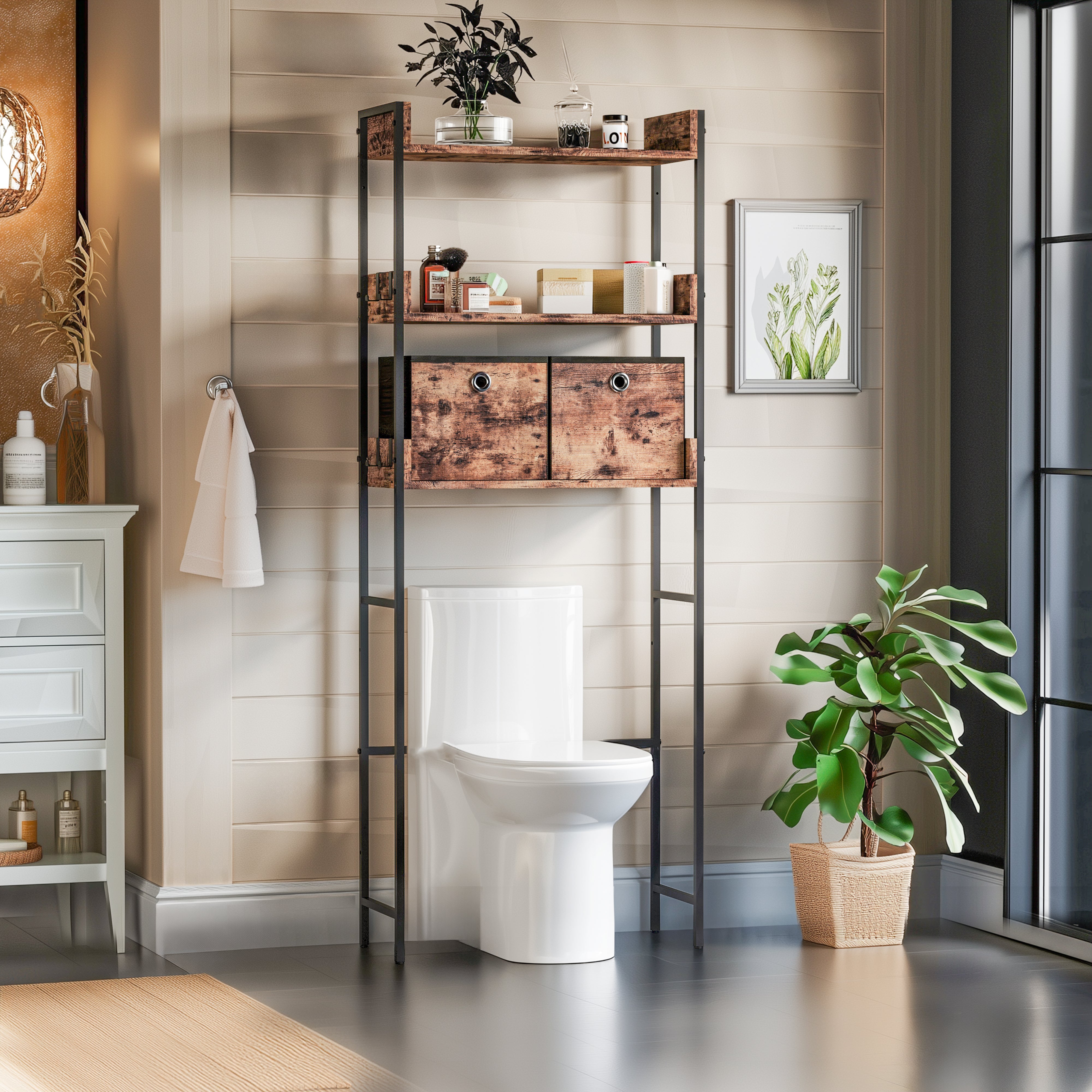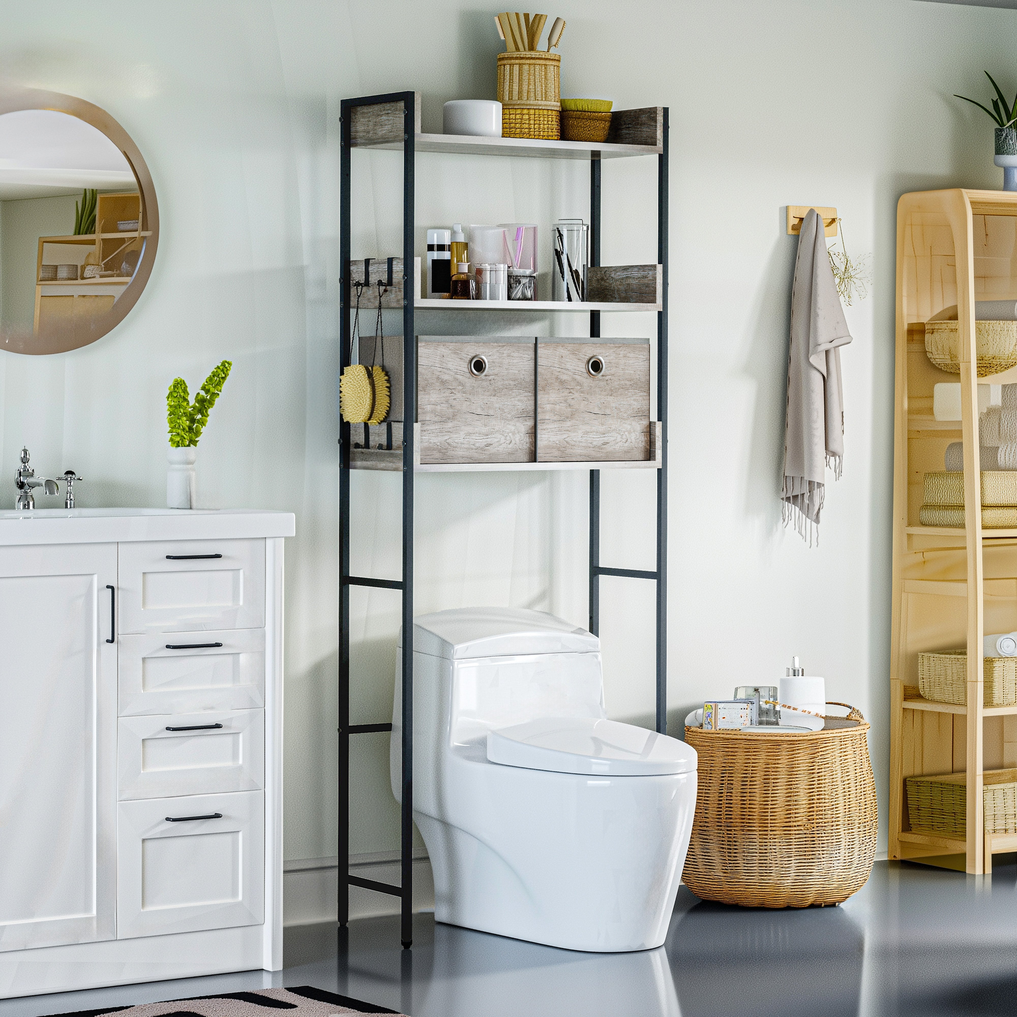 Estante de 3 Niveles para sobre el Inodoro con 2 Cajas de Almacenamiento Organizador de Baño