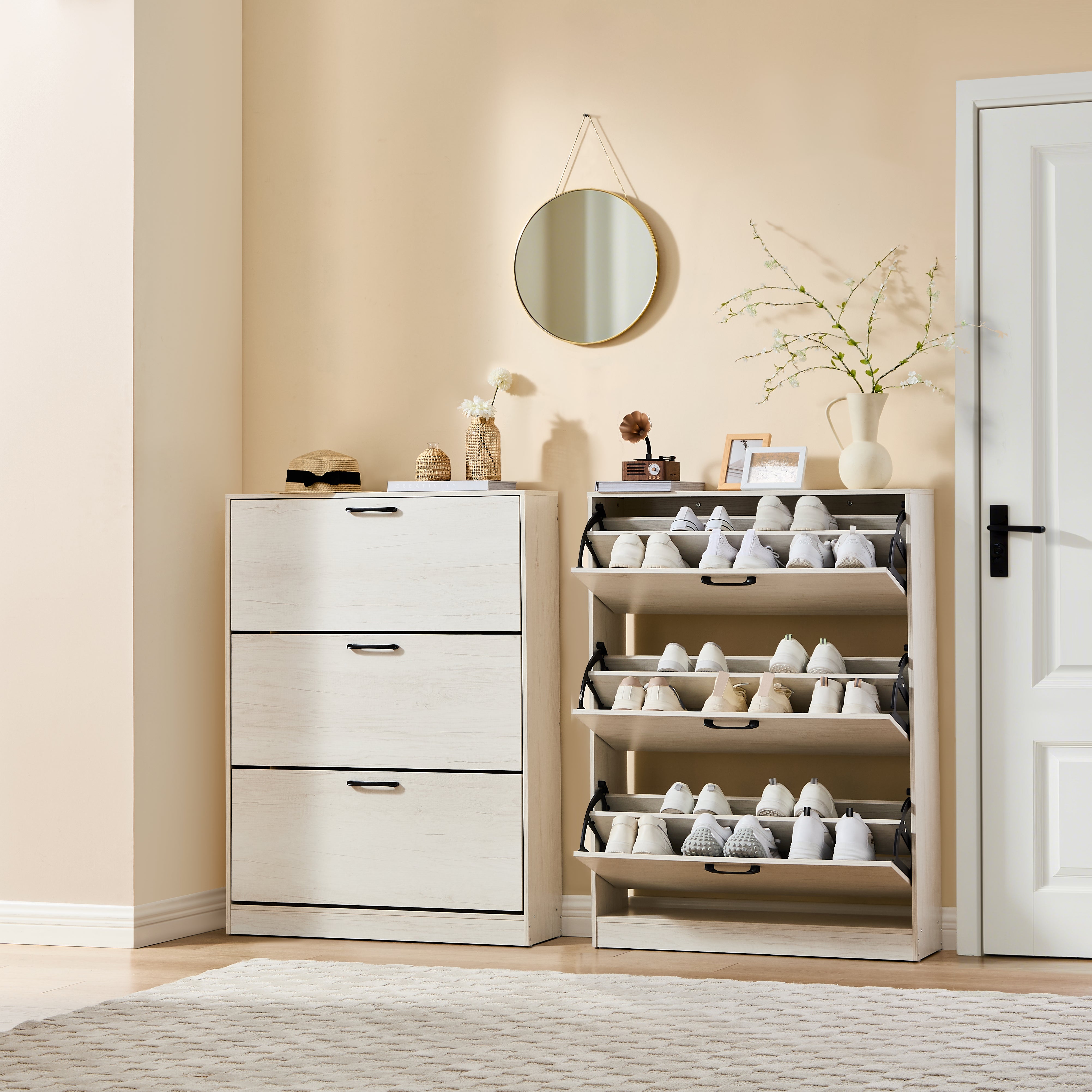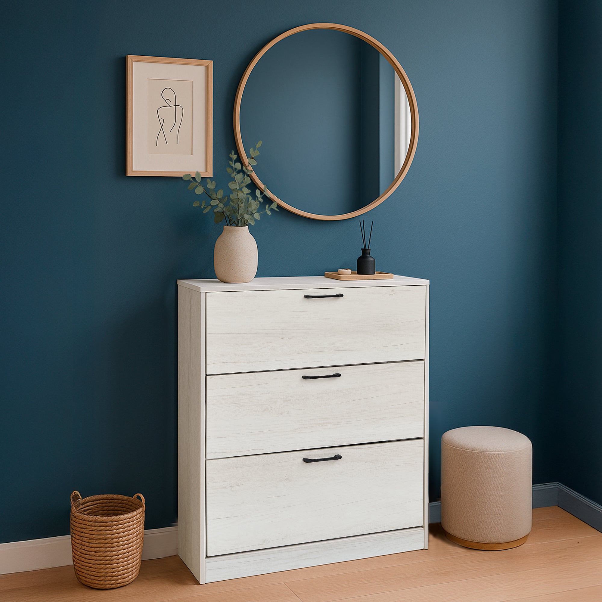 Gabinete para Calzado 3 Cajones Abatibles, Blanco Marfil, Diseño Estrecho para Recibidor