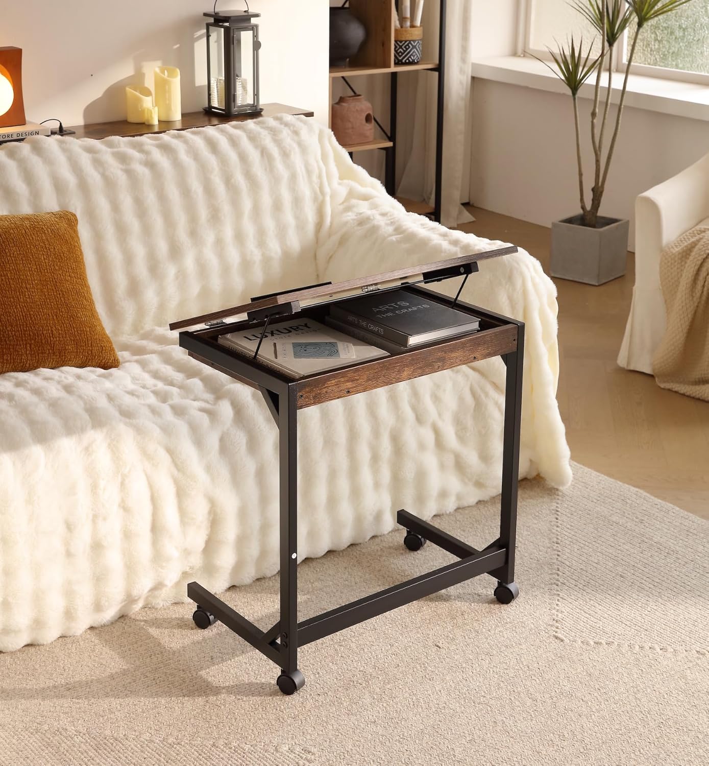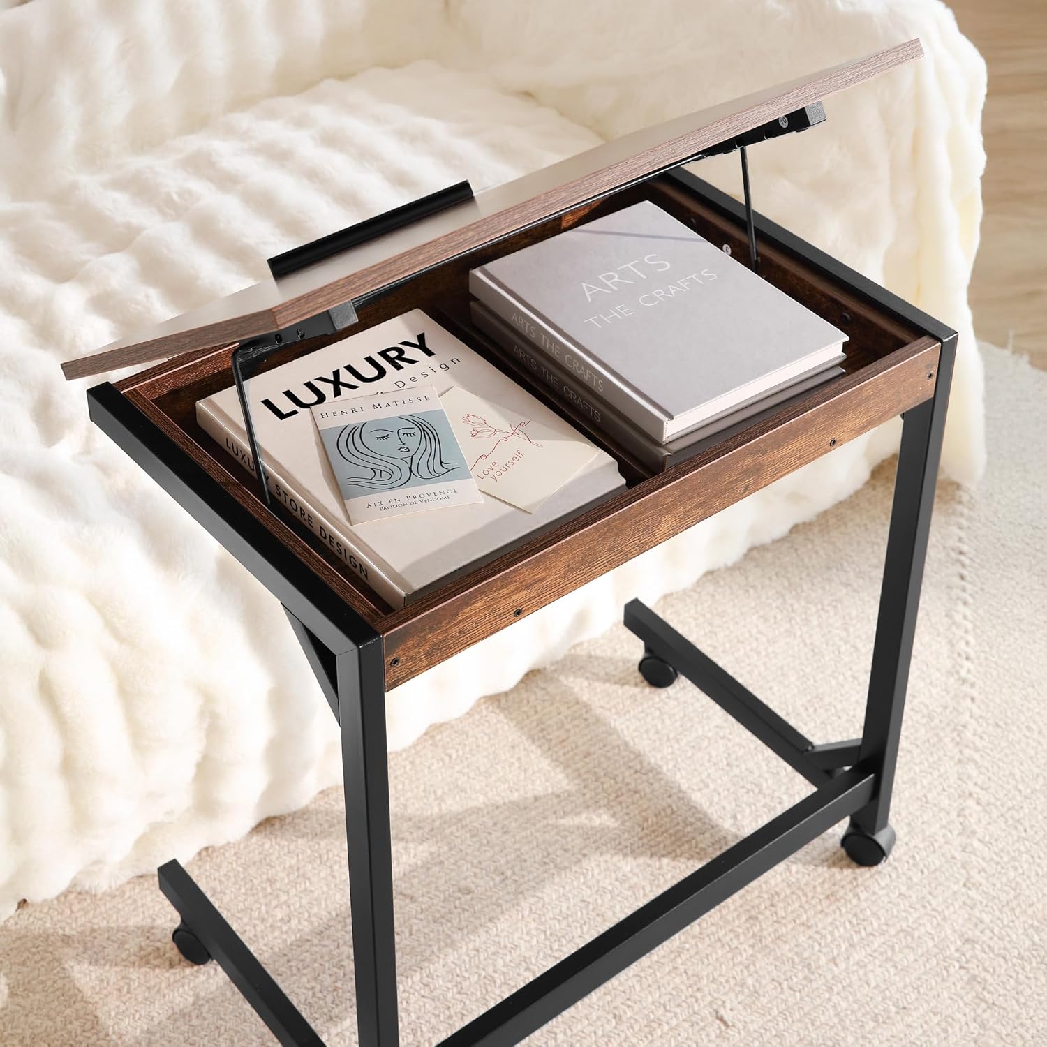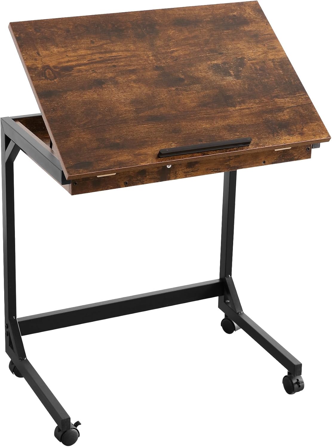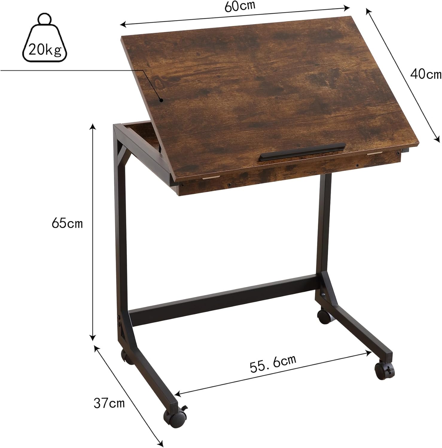 Mesa Tipo C con Ruedas, Tablero Inclinable y Acabado Atigrado– Ideal para Laptop, Sofá o Cama