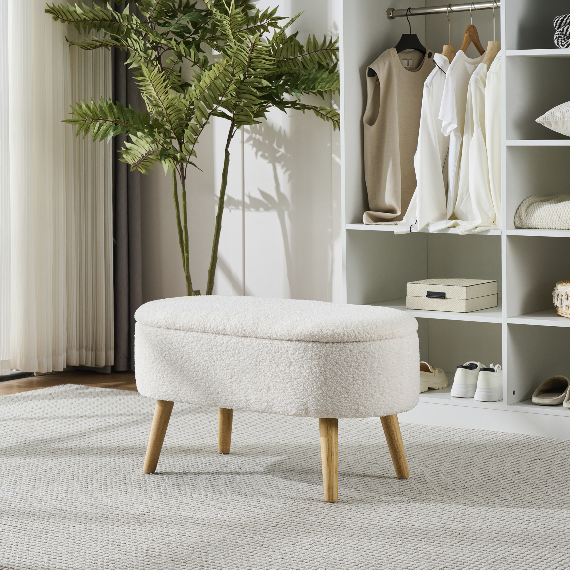 Taburete Otomano con Asiento Acolchado Blanco para Sala y Recámara