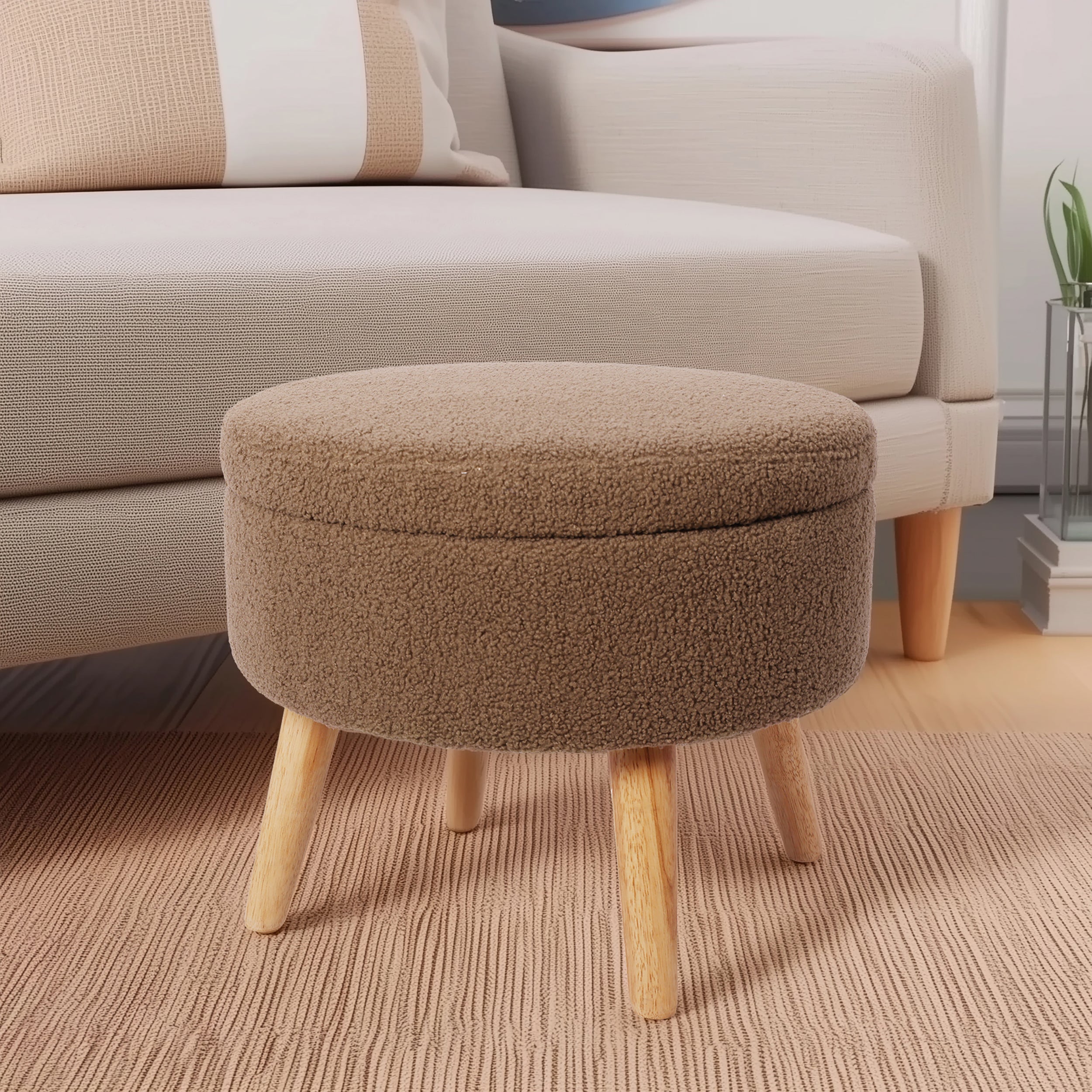 Taburete Otomano Pata Alta con Mesa Auxiliar Café para Sala y Recámara