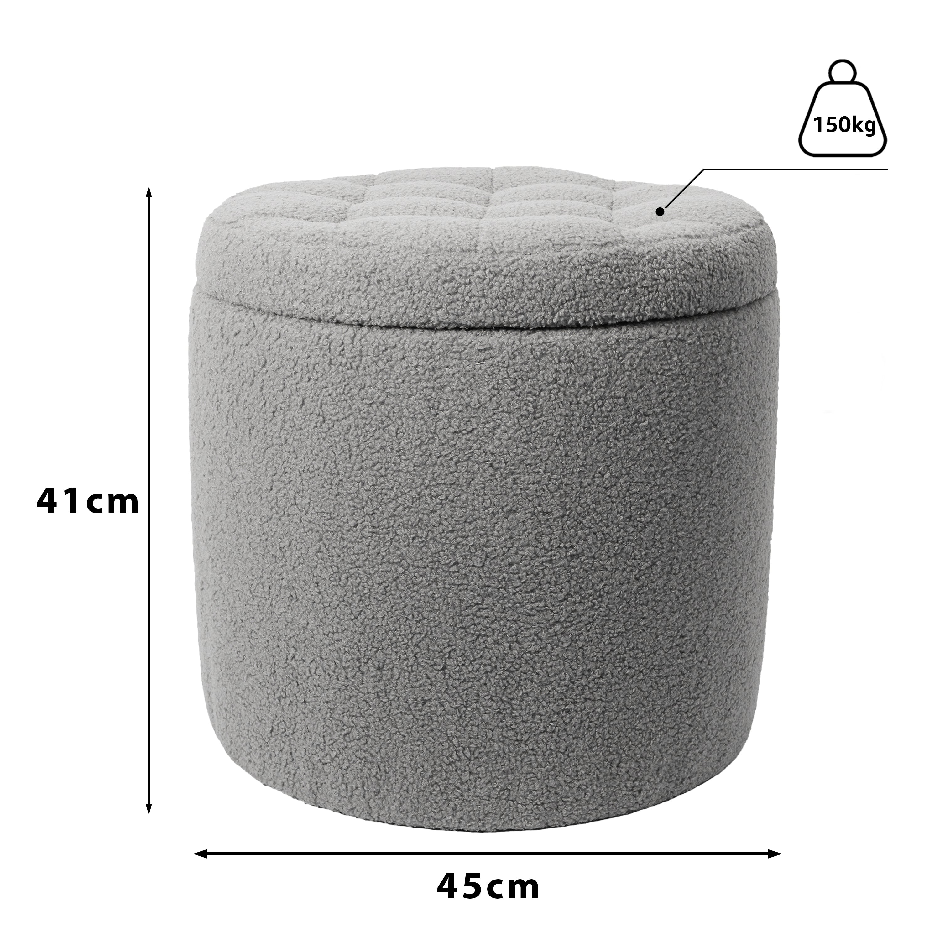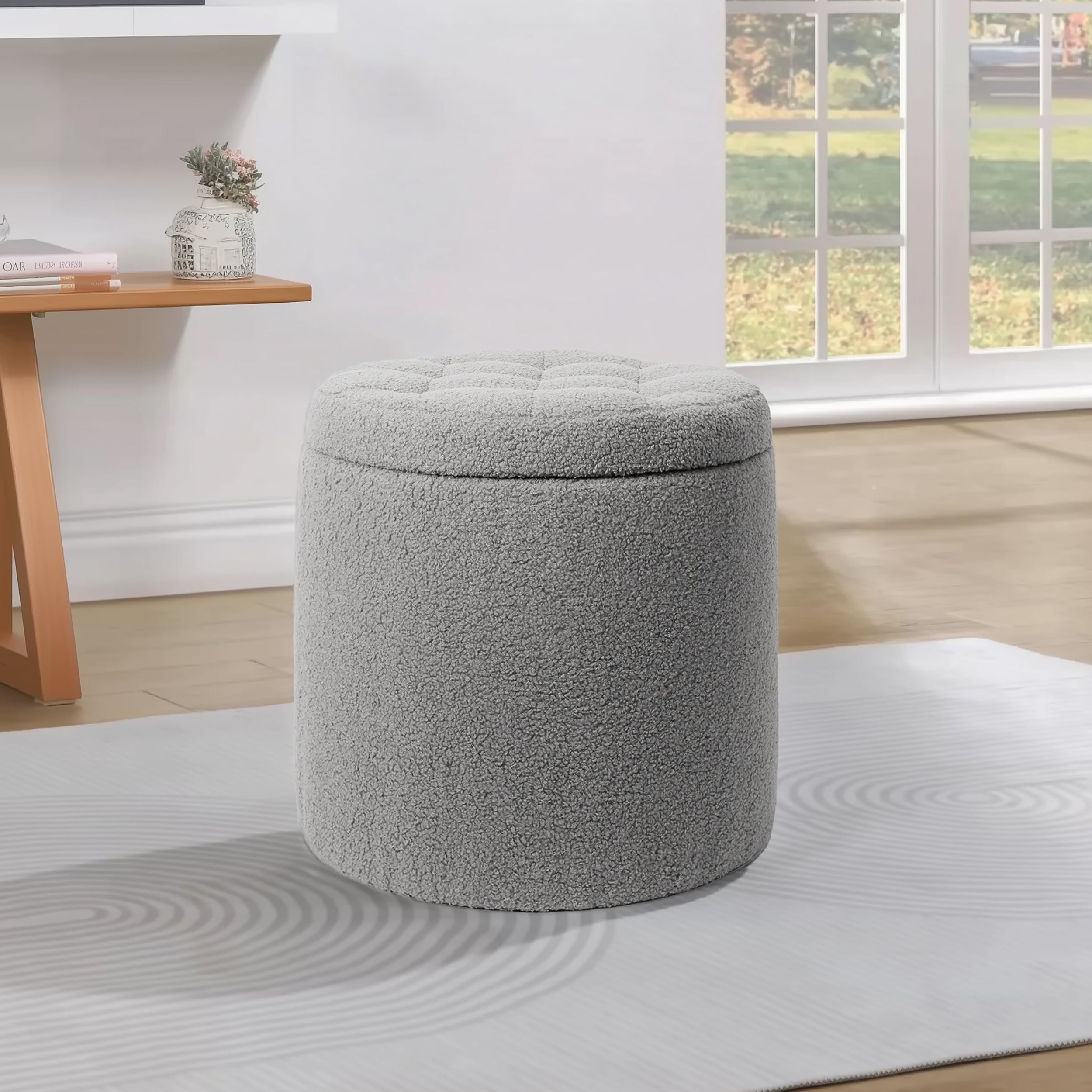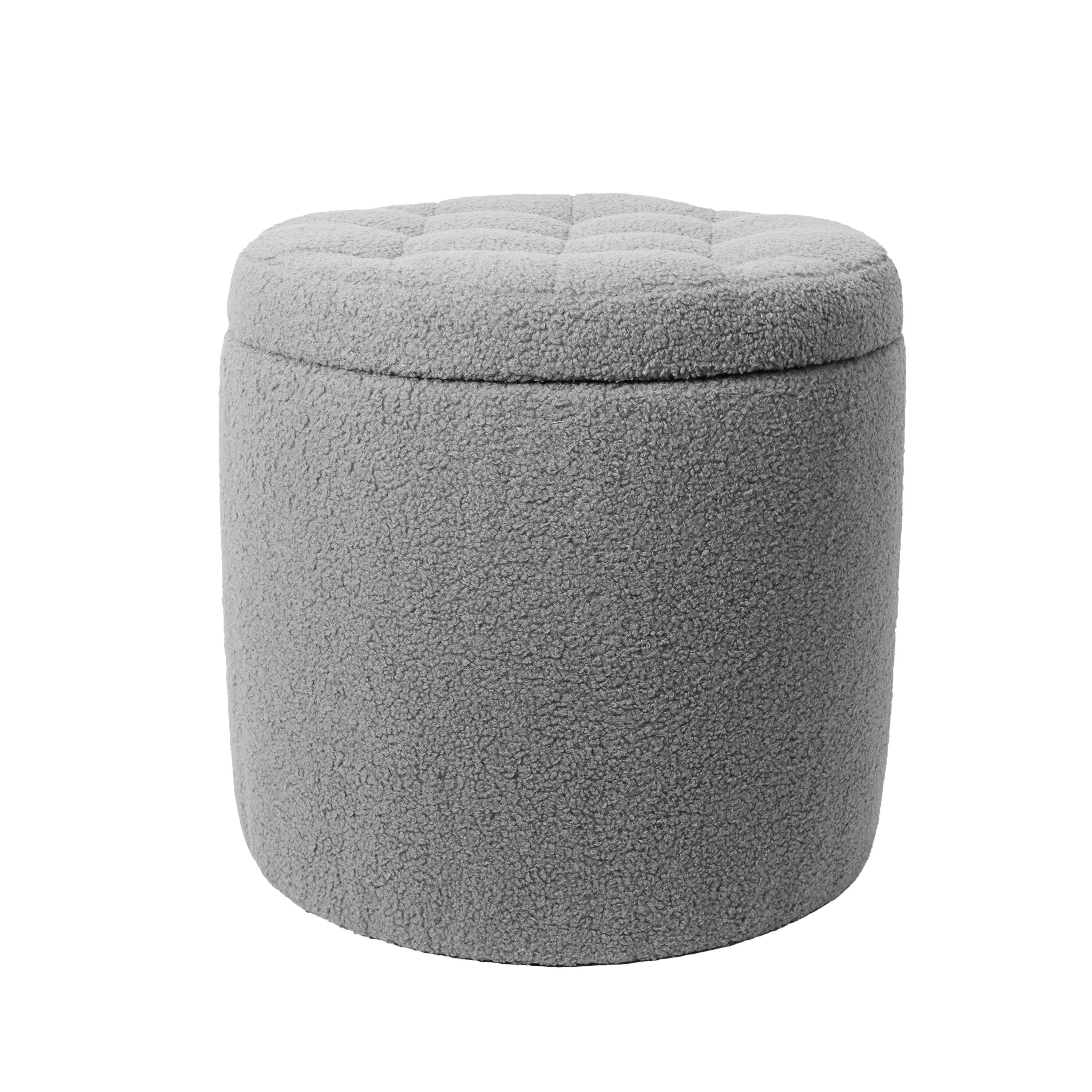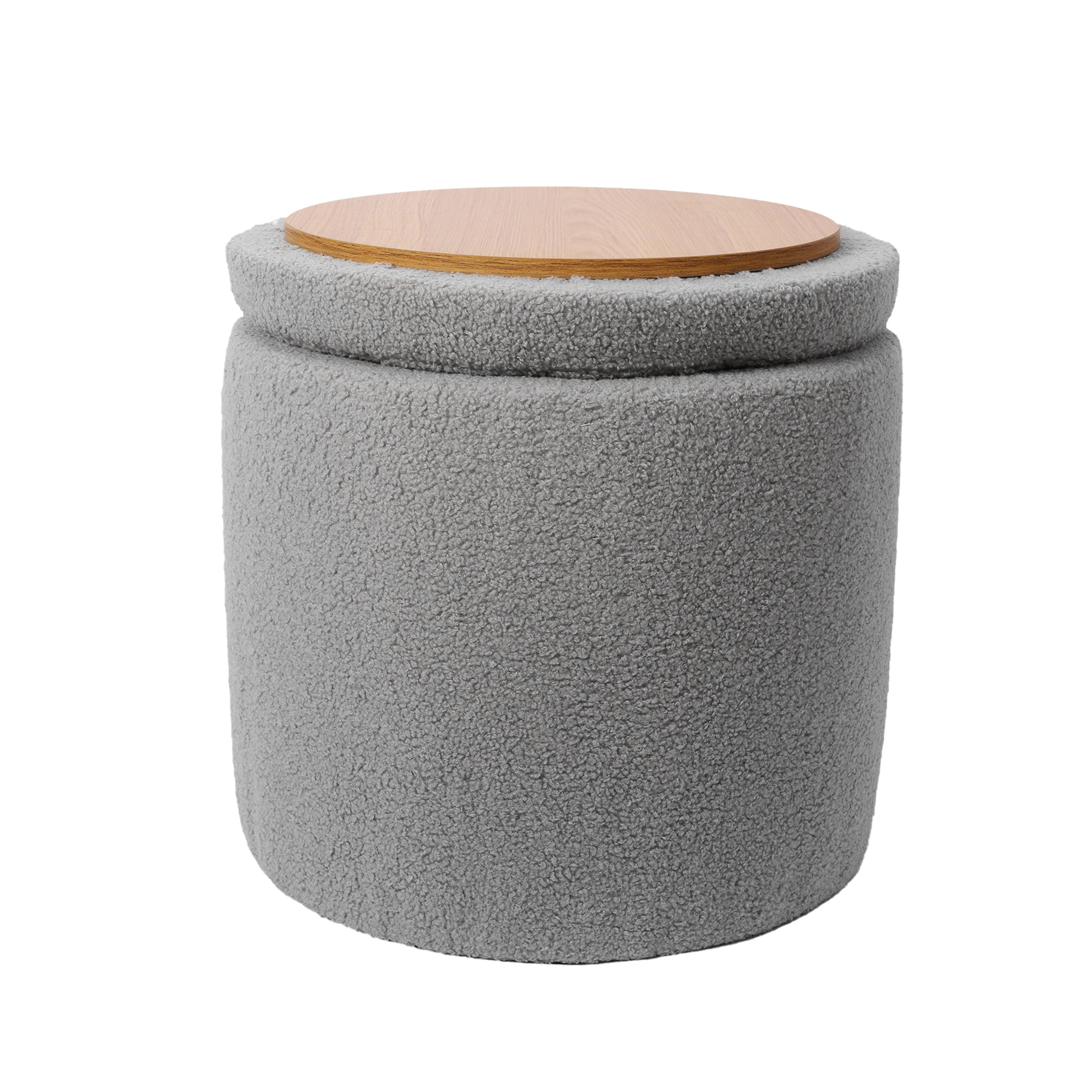 Taburete Otomano Redondo Gris con Mesa Auxiliar para Sala y Recámara