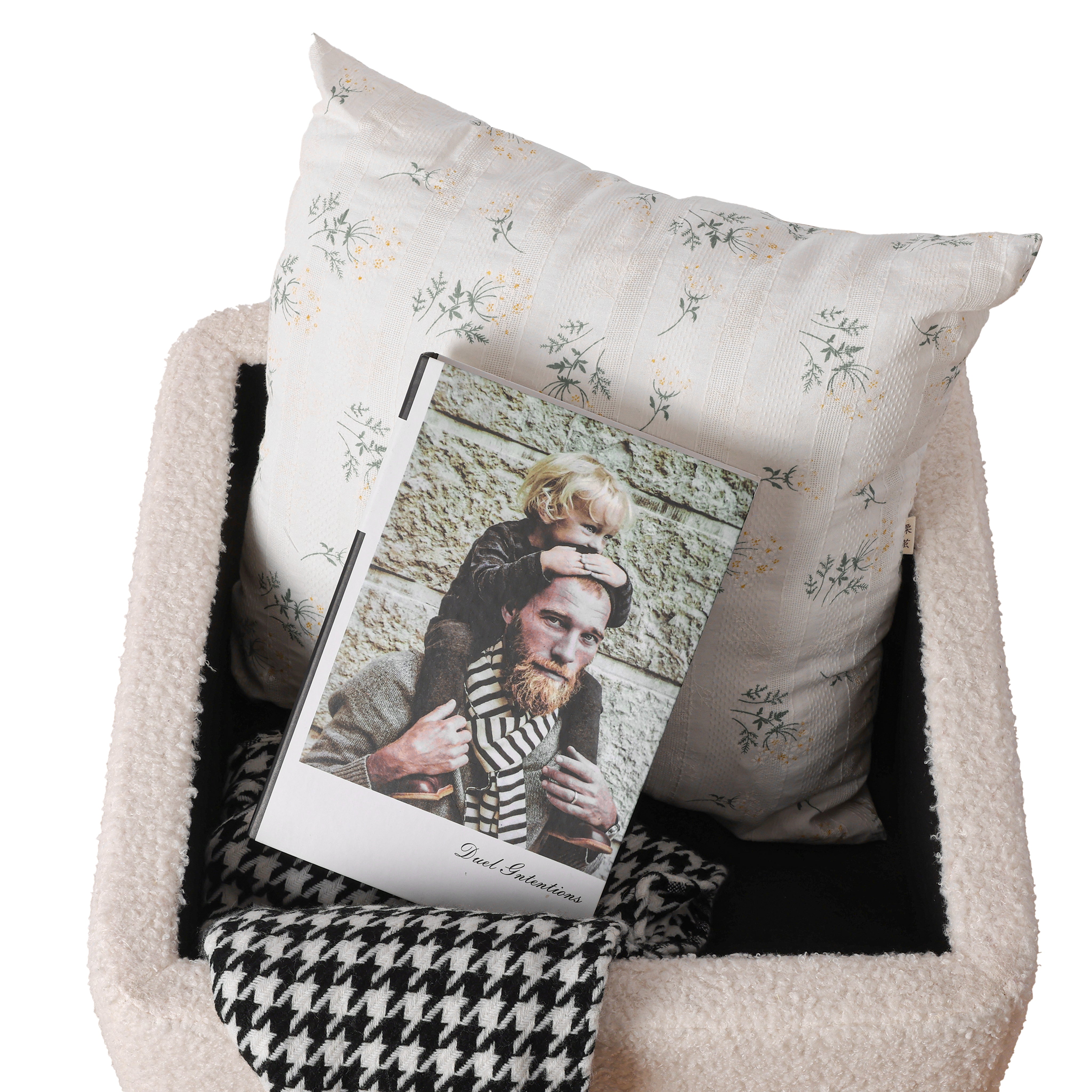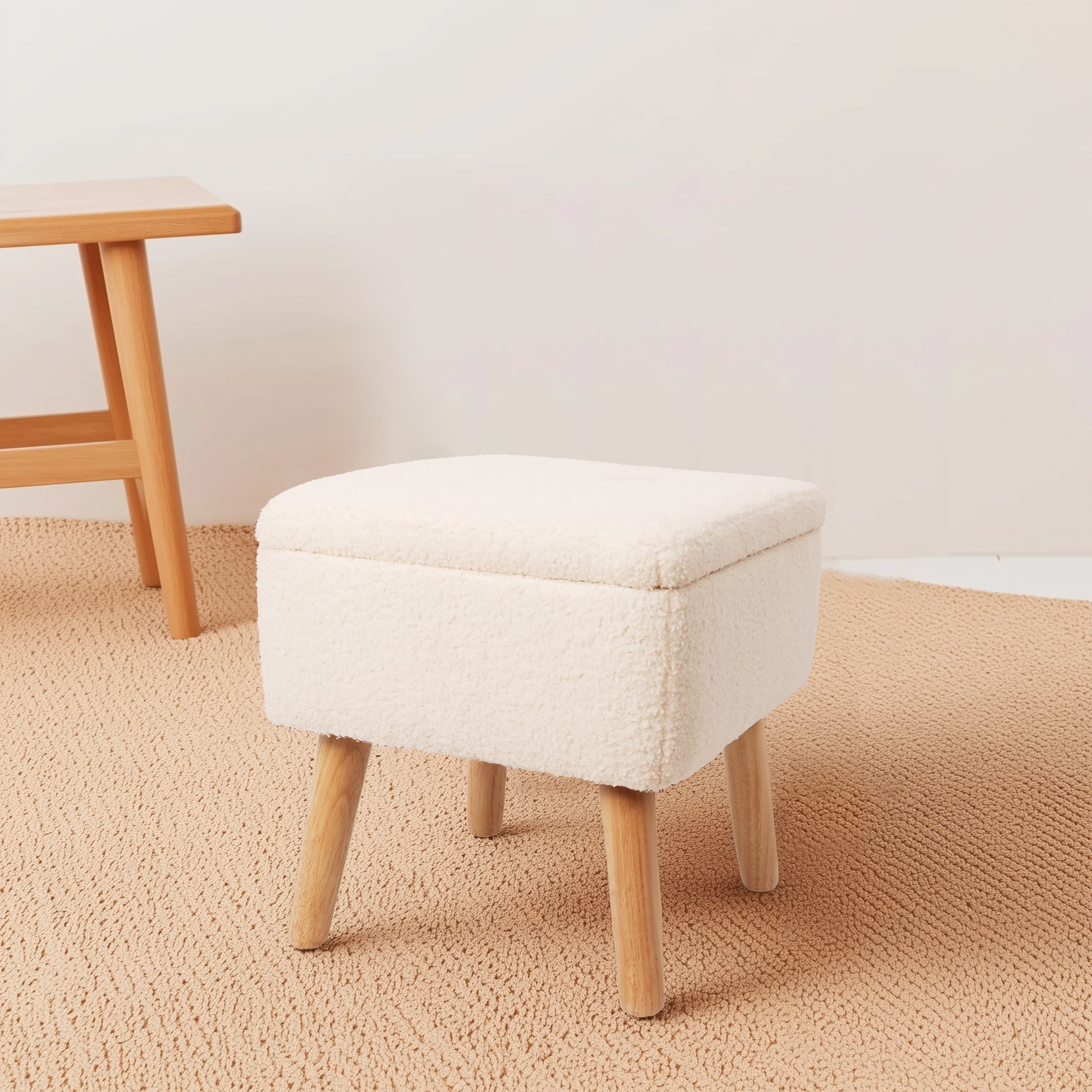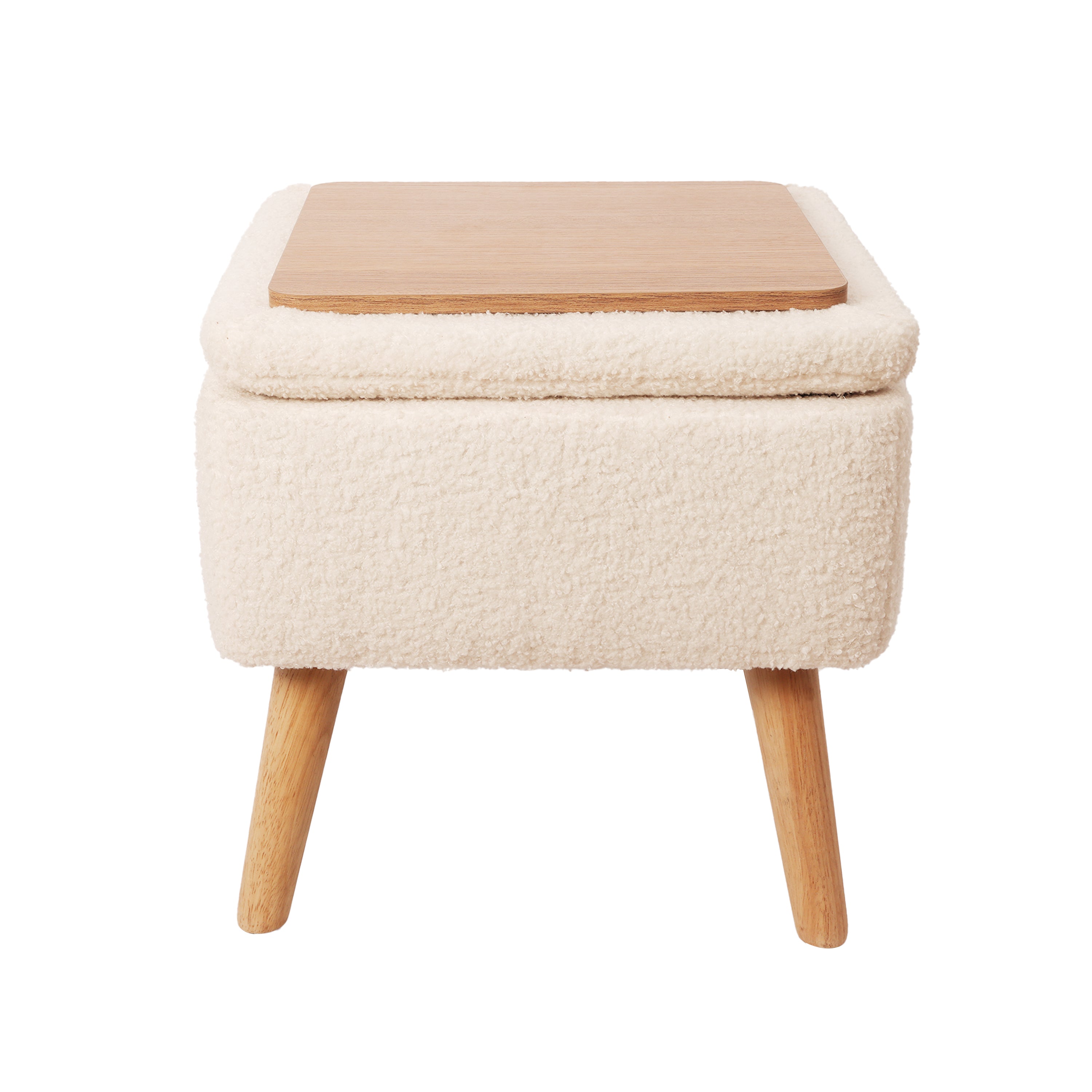Otomano de Tela Teddy con Mesa Auxiliar – Taburete Multiuso para Sala o Recámara